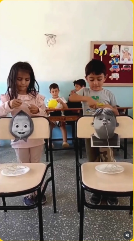 Maşa ile Hayri'ye makarna yediren 1. sınıf öğrencilerimizin ince motor becerilerini geliştirmeyi hedefledik.